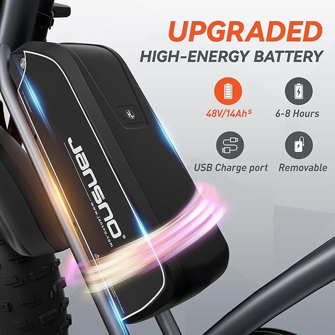 - 🚲【Removable Battery】 – Fat Tire electric bike is equipped with 48V/14Ah lithium batteries with larger capacity and longer lifespan, which covers a range of 20-40 miles on a full charge. Removable battery, convenient to take it home or office to charge.