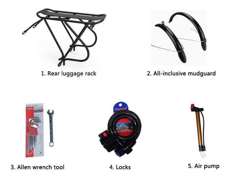 Adopting a double oil spring shock absorber front fork, it provides riders with a stronger comfortable experience during bumpy riding. The 20 inch large wheel diameter has potholes and dirt roads, making it easy to pass through speed bumps.The tire width reaches 6 centimeters, providing anti slip and shock resistance, with a larger span.